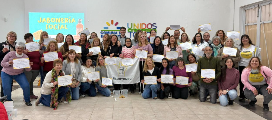 Este lunes 27 de octubre en el SUM comunal, se realizó el acto de cierre del programa de capacitación “Jabonería Social”, impulsado por la diputada provincial Sofía Galnares, la Comuna de Elortondo, la ONG Espuma y el grupo Elortondo Sustentable.