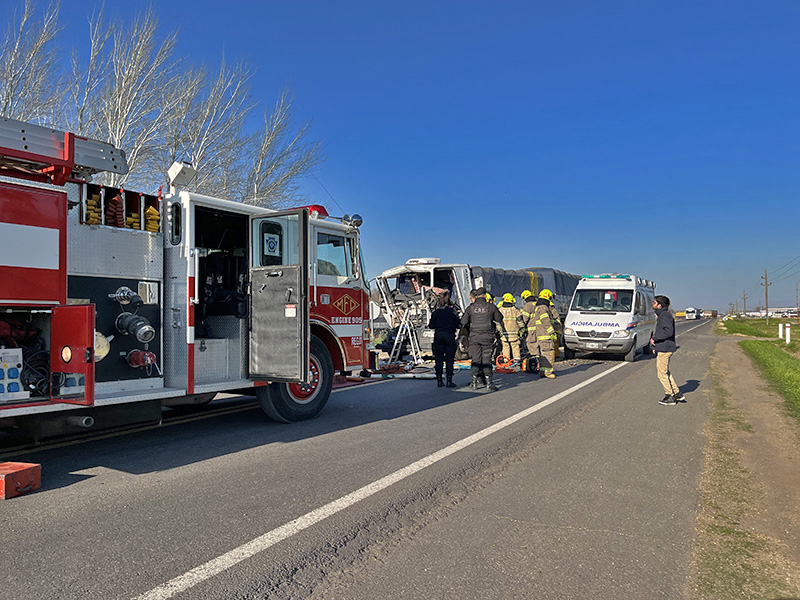 El impacto se produjo sentido hacia Rosario. Personal de bomberos tuvieron que utilizar herramientas de corte para poder rescatar al chofer que se encontraba consciente, pero había quedado atrapado en la cabina. Una vez rescatado, fue trasladado por una ambulancia hacia un centro de salud.