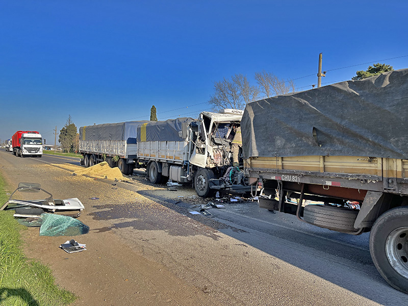 Por lo que se pudo observar en el lugar y de acuerdo a las imágenes tomadas por este medio, se trataría de un choque por alcance, dado que un camión Iveco cargado con soja (oriundo de Coronel Moldes, Pcia. de Córdoba) impactó contra la parte trasera de un camión Ford Cargo semirremolque (oriundo de Las Heras, Pcia. de Mendoza).